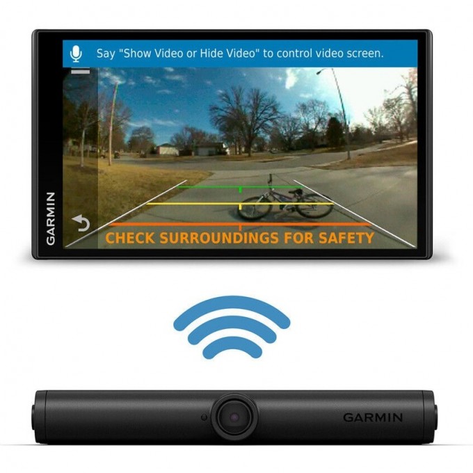 - Беспроводное соединение с Wi-Fi-совместимым навигатором Garmin для отображения камеры заднего вида на экране навигатора